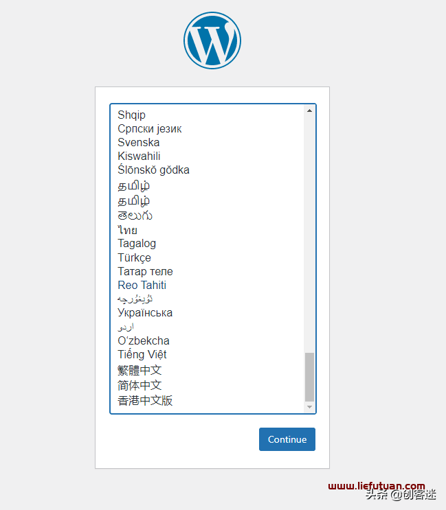 打开域名会自动跳转到程序安装目录,首先就是选择语言,简体中文在最下面。